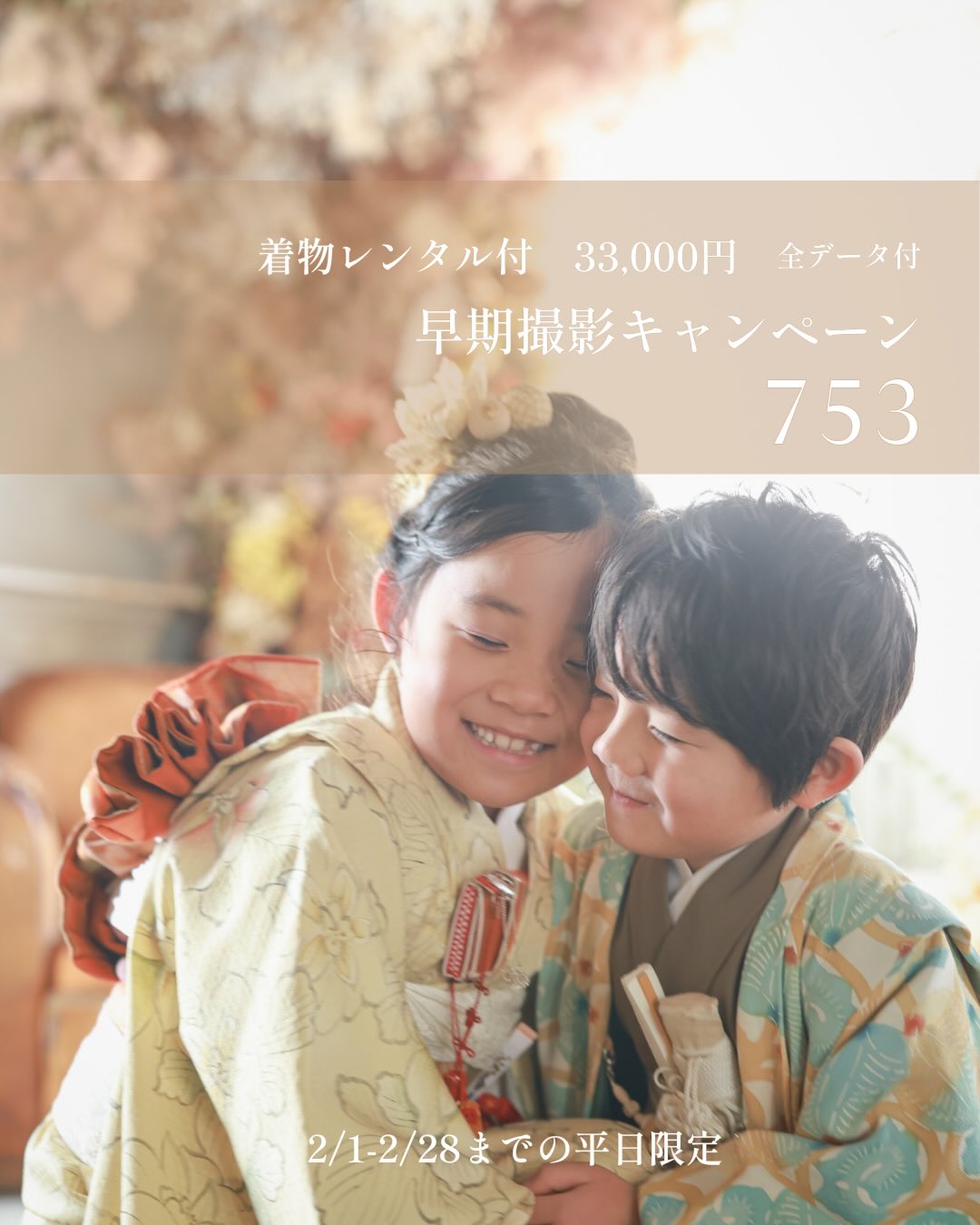 撮影枠限定のとってもお得な撮影会です。お子様の成長を残したい方、是非ご予約くださいませ