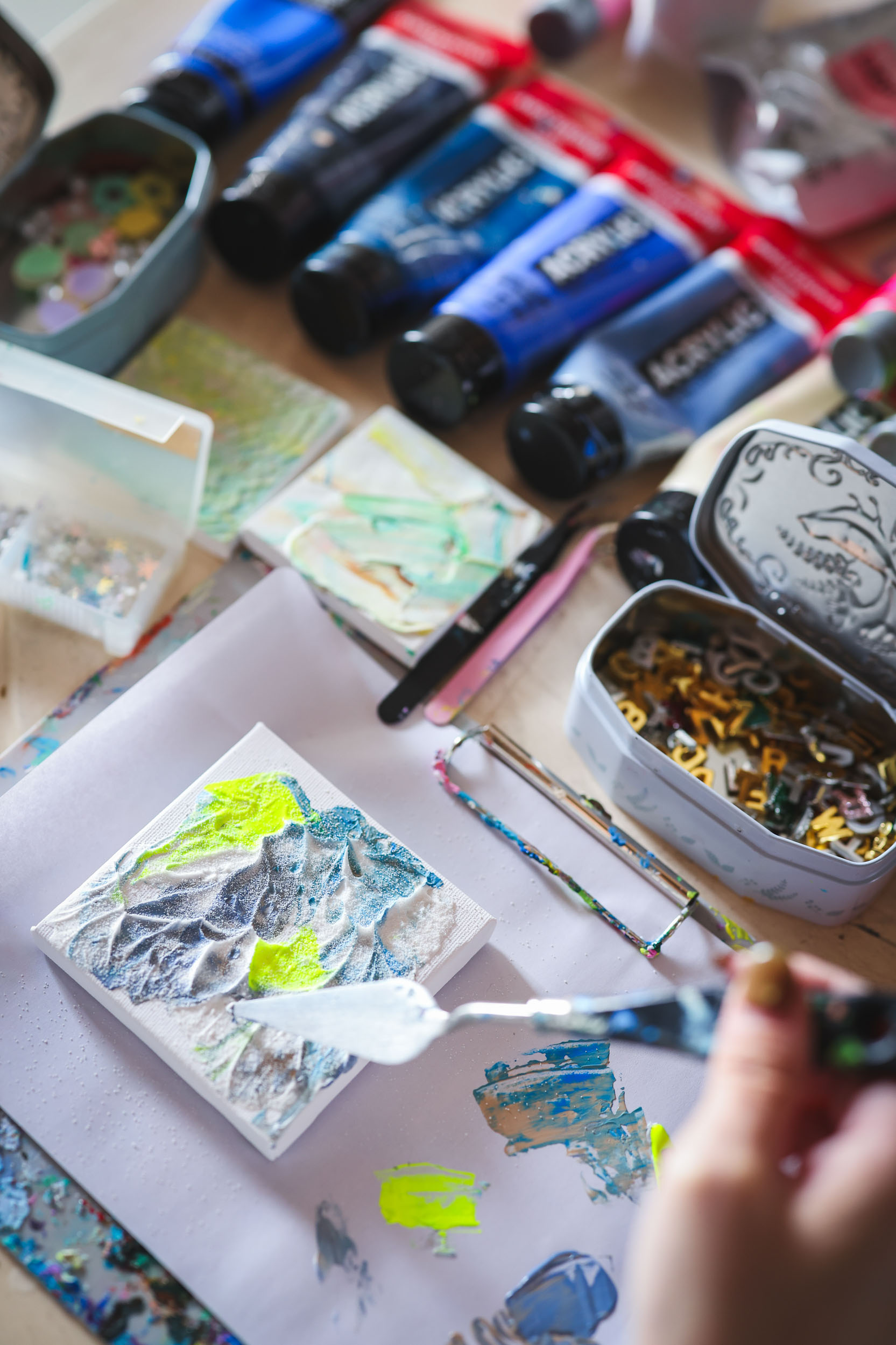絵の具をのばしたり、叩いたり 塗り重ねたり、もりっと盛ったり。