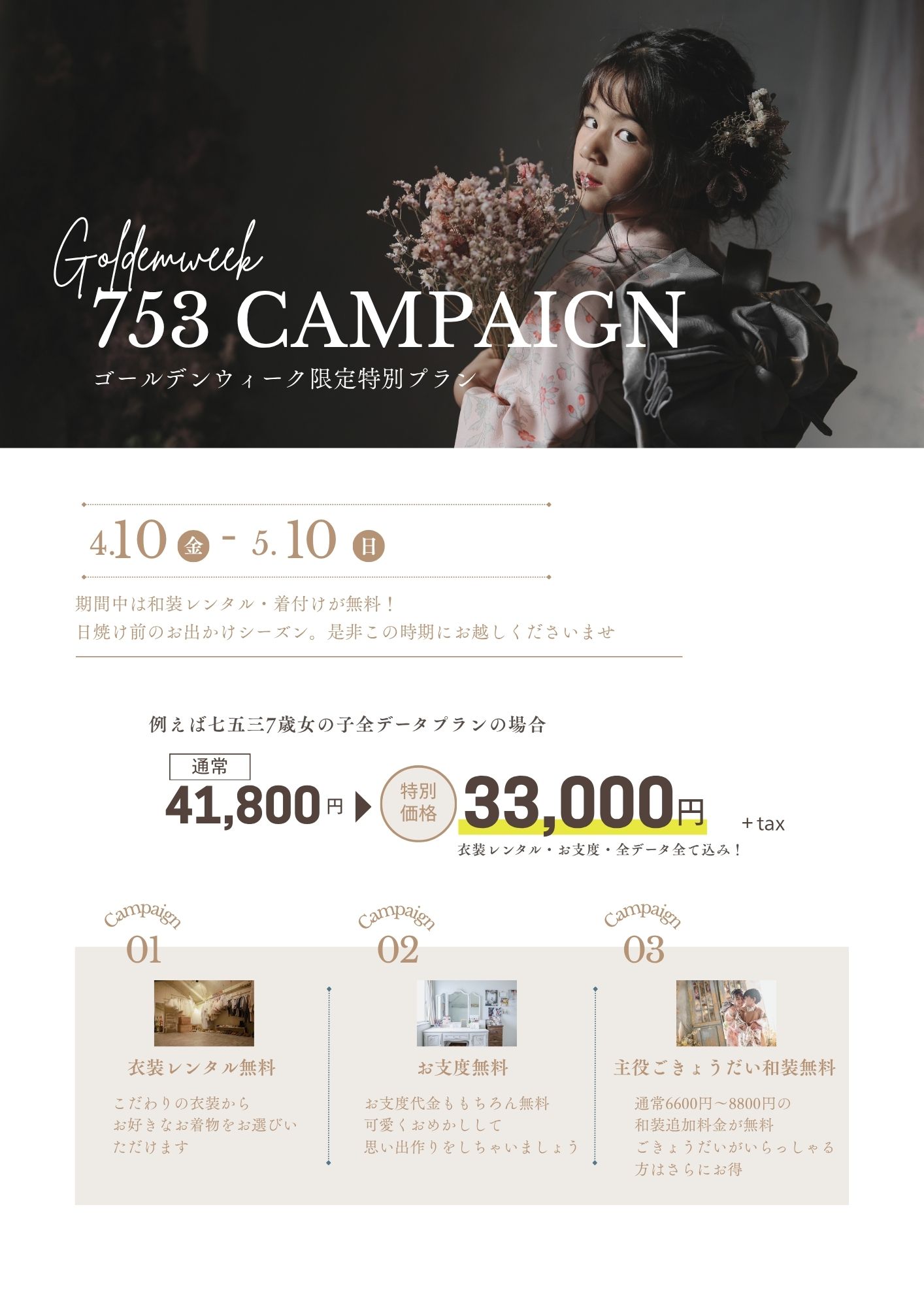 ゴールデンウィーク期間のとってもお得な七五三キャンペーンを開催します!